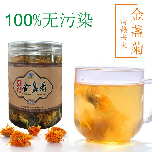 莊園精選!天然清熱去火 美容養(yǎng)顏手工挑選金盞菊25g*2罐裝包郵